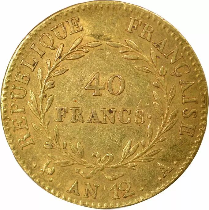 Accueil > Archivage > archivage-Monnaies françaises (470 à 2002) > France Bonaparte - 40 Francs Or, Consulat - An 12 A Paris