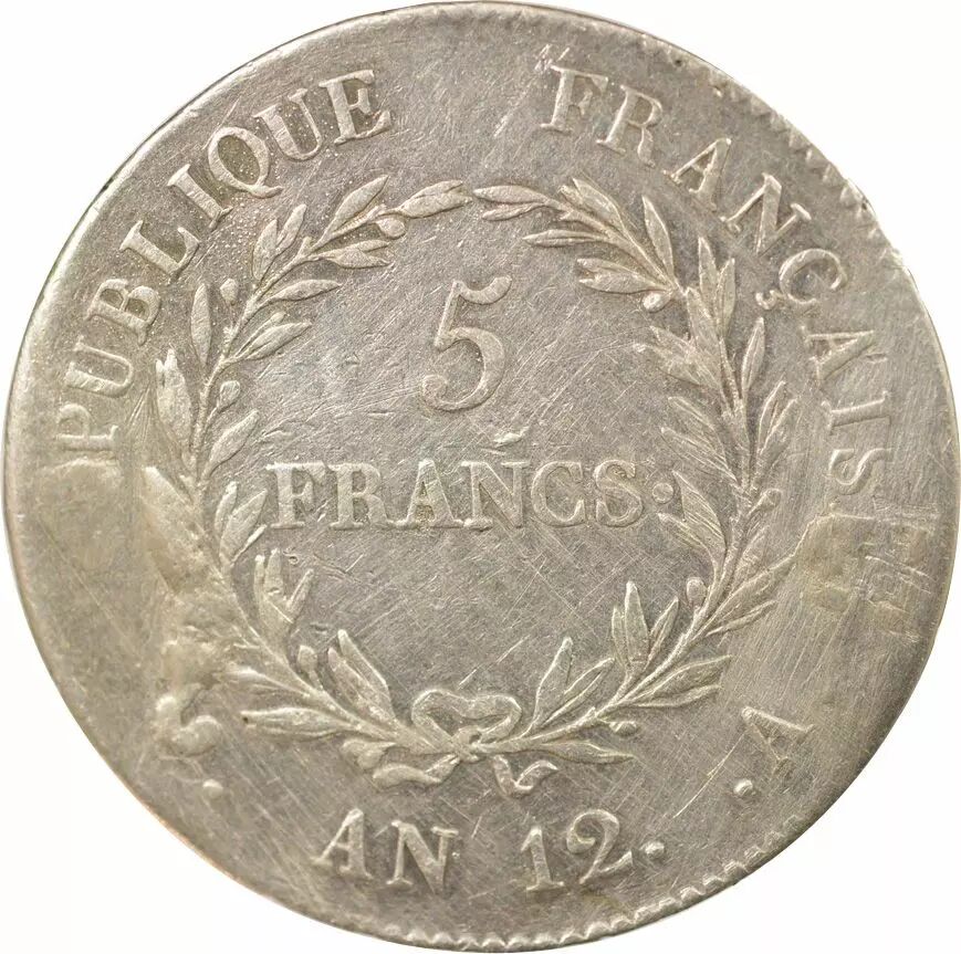Pièce France Bonaparte Ier Consul - 5 Francs Argent - An 12 A Paris