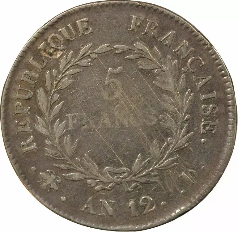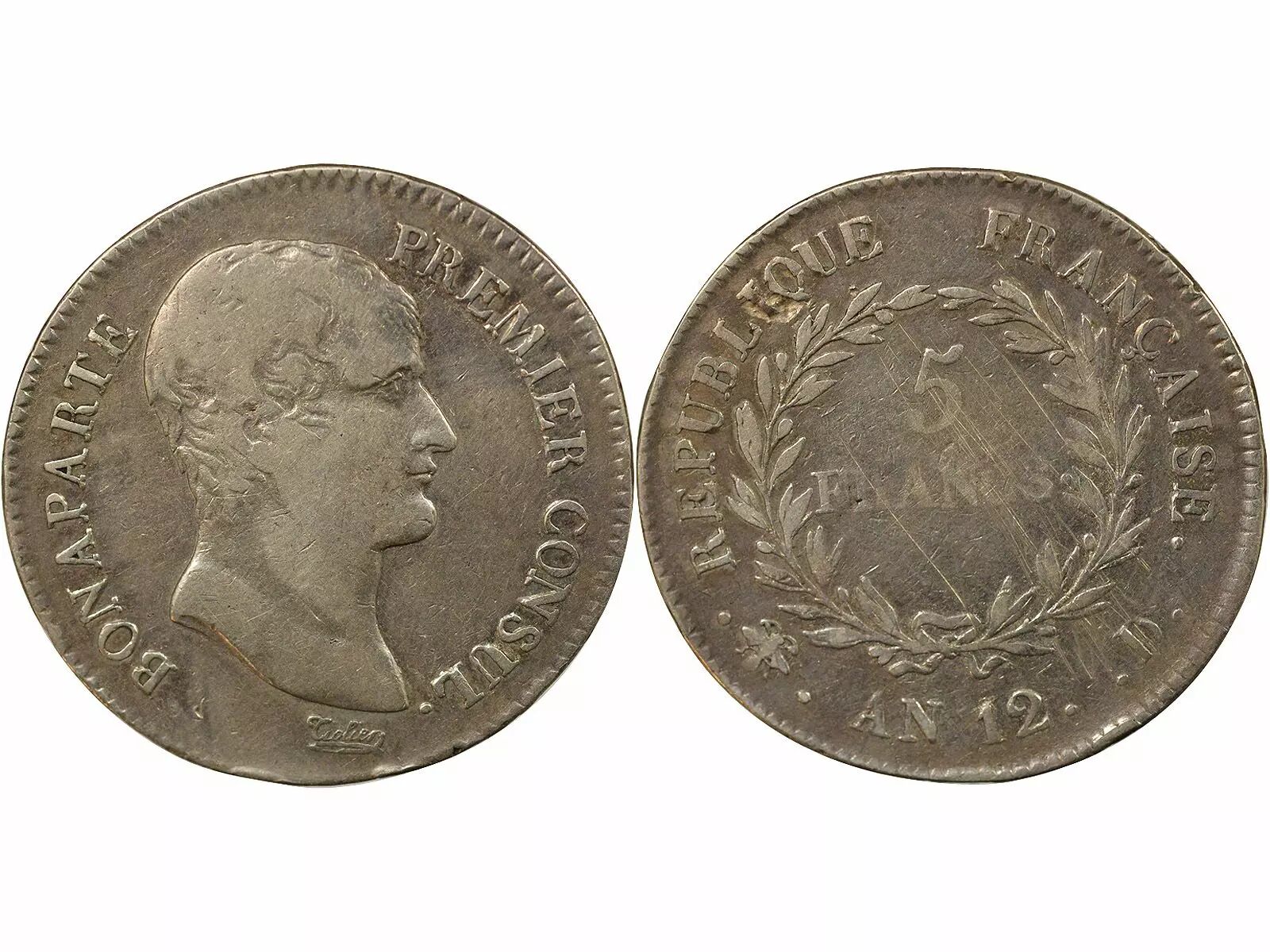 Pièce France Bonaparte Ier Consul - 5 Francs Argent - An 12 D Lyon