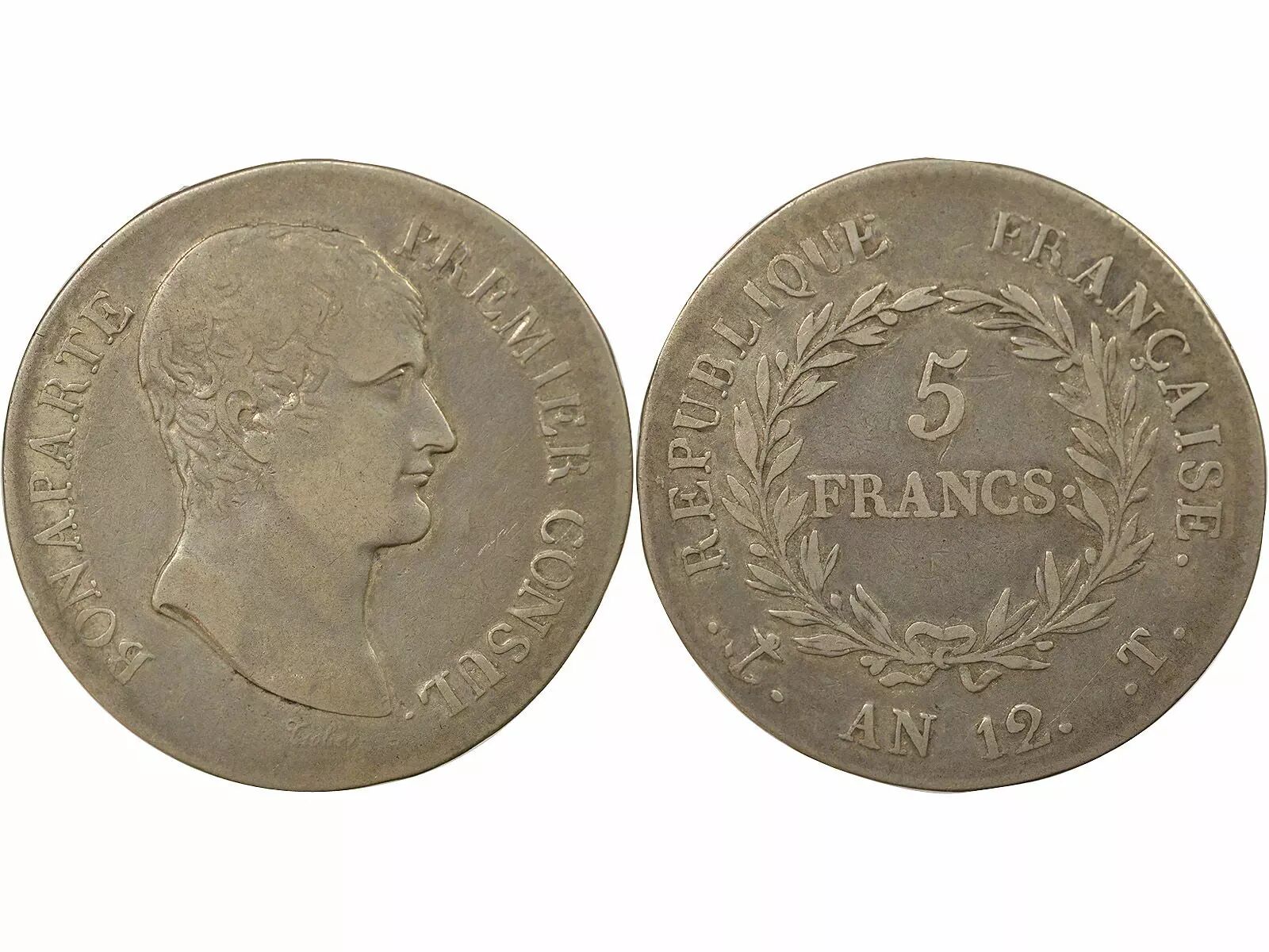 Pièce France Bonaparte Ier Consul - 5 Francs Argent - An 12 T Nantes