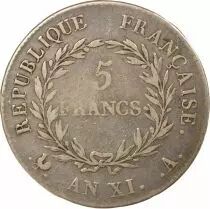 Accueil > Archivage > archivage-Monnaies françaises (470 à 2002) > France Bonaparte Ier Consul - 5 Francs Argent - An XI A Paris