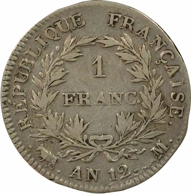 Home > French coins (470 à 2002) > Modern Currencies (1789 to 2002) > 1 French Franc > France Bonaparte - Silver Franc - Year 12 M Toulouse