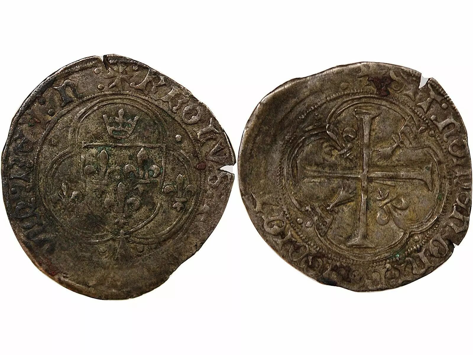 Pièce France Bretagne, Charles VIII - Blanc à la Couronne - 1491 / 1498 Nantes - Légende Krolvs