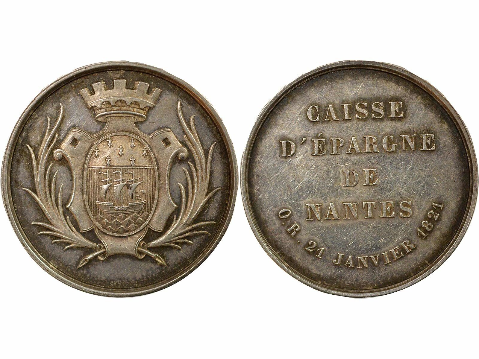 Revers : CAISSE / D'EPARGNE / DE / NANTES / O . R . 21 JANVIER 1821