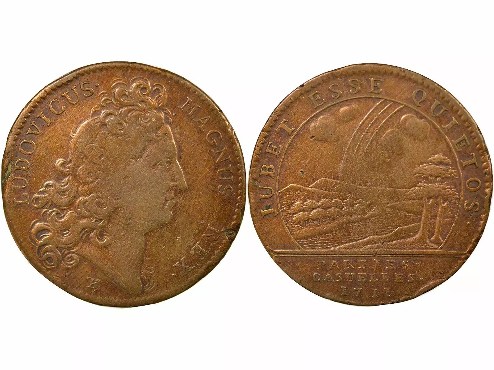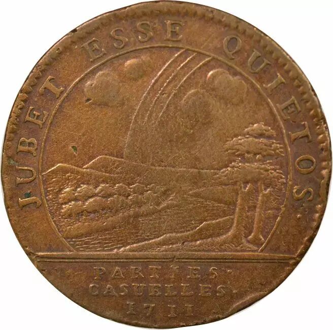 Reverse : JUBET ESSE QUIETOS . / PARTIES . / CASUELLES . / 1711 .