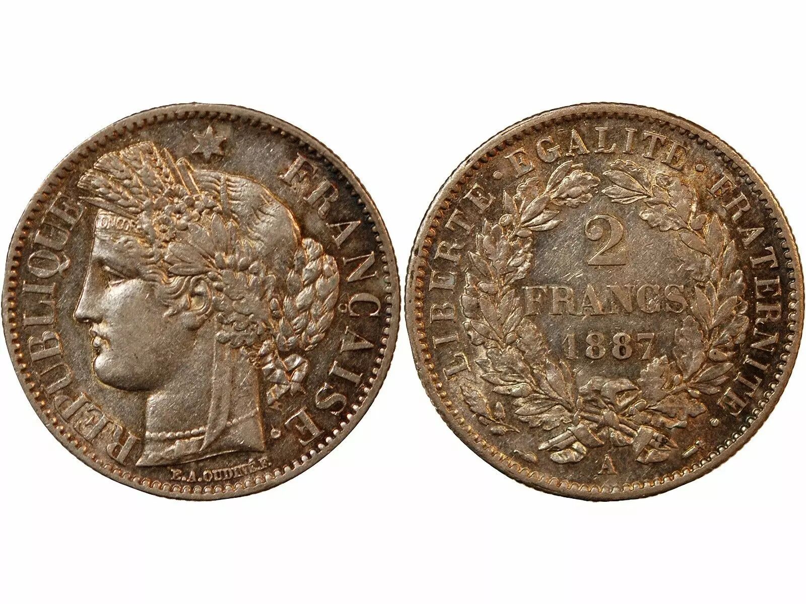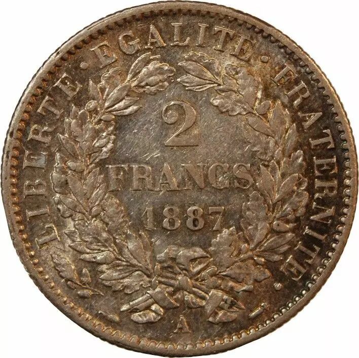 Pièce France Cérès - 2 Francs 1887 A Paris - Avec Légende