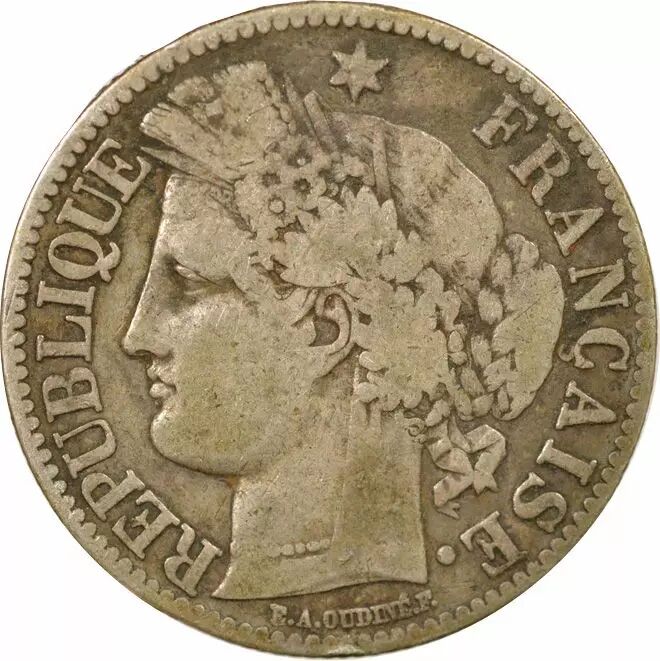 Pièce France Cérès - 2 Francs Argent, IIIe République - 1871 A Paris
