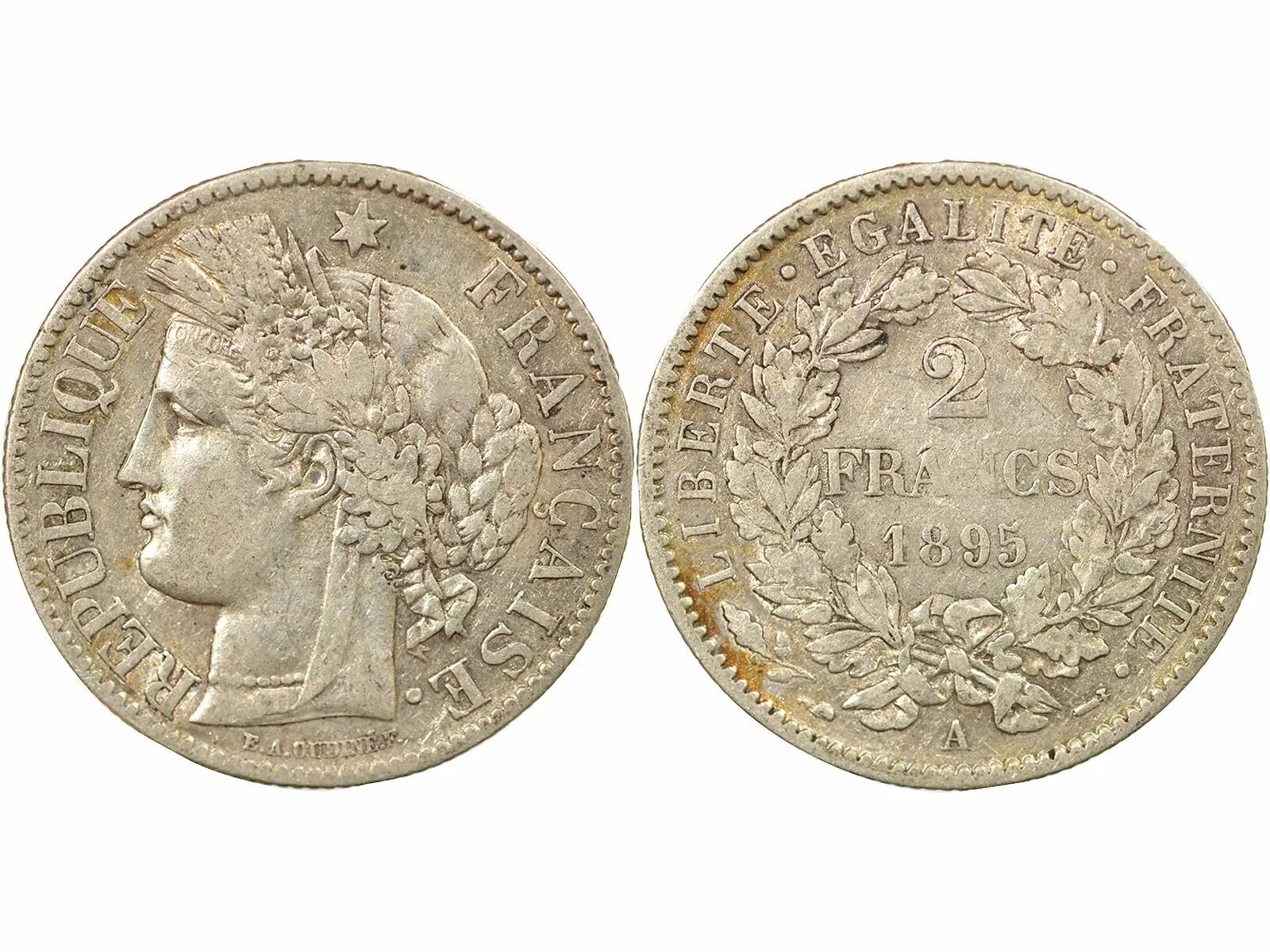 Pièce France Cérès - 2 Francs Argent, IIIe République - 1895 A Paris