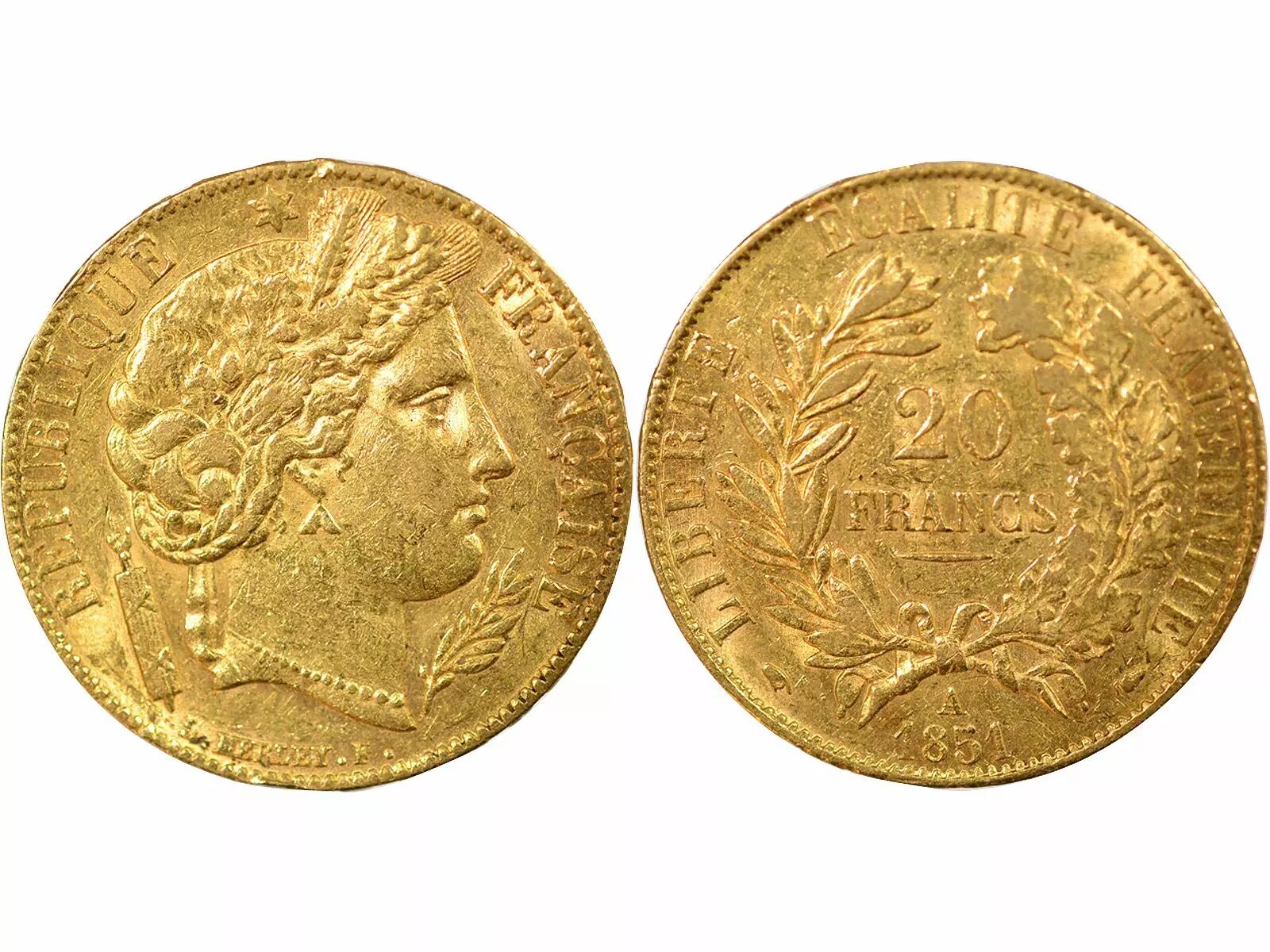 Pièce France Ceres - 20 Francs Or, IIe République - 1851 A Paris