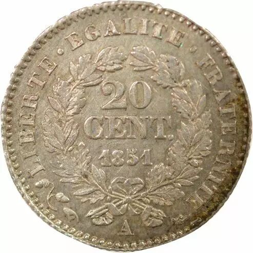 Home > > France Ceres - 20 Silver Centimes, IInd Republic - 1851 A Paris