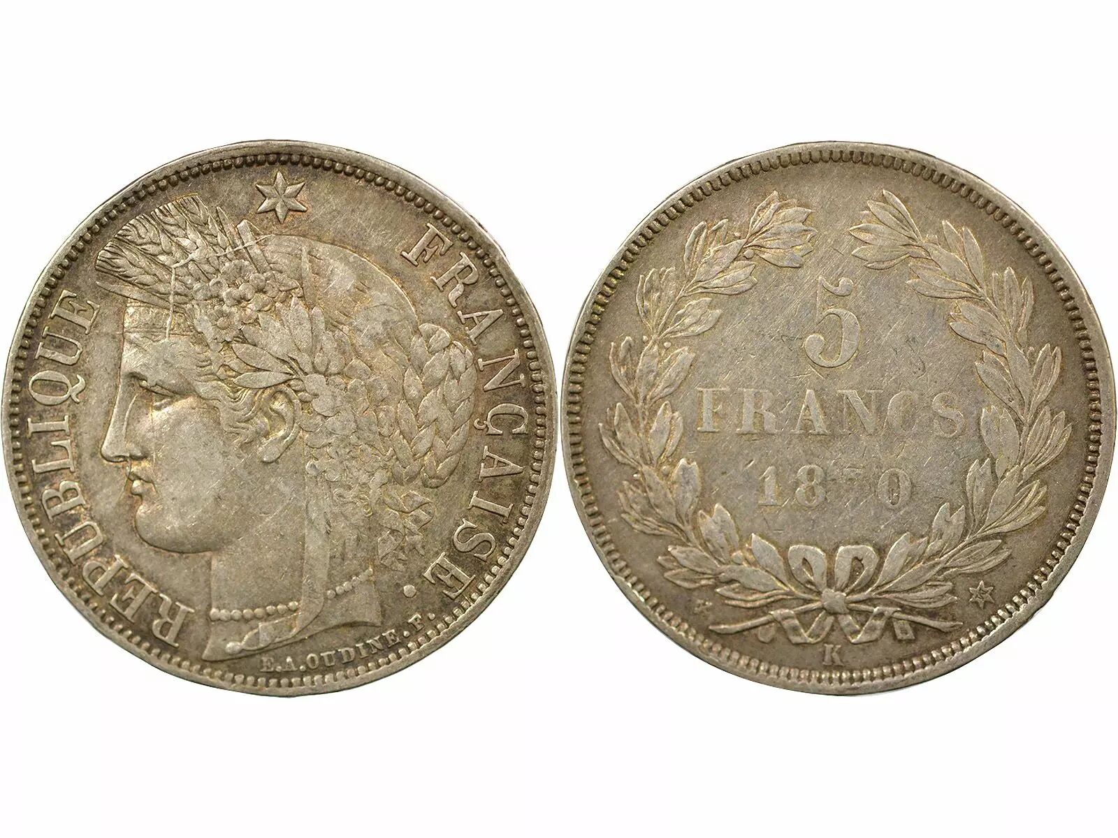 Pièce France Cérès - 5 Francs Argent 1870 K Bordeaux - Argent