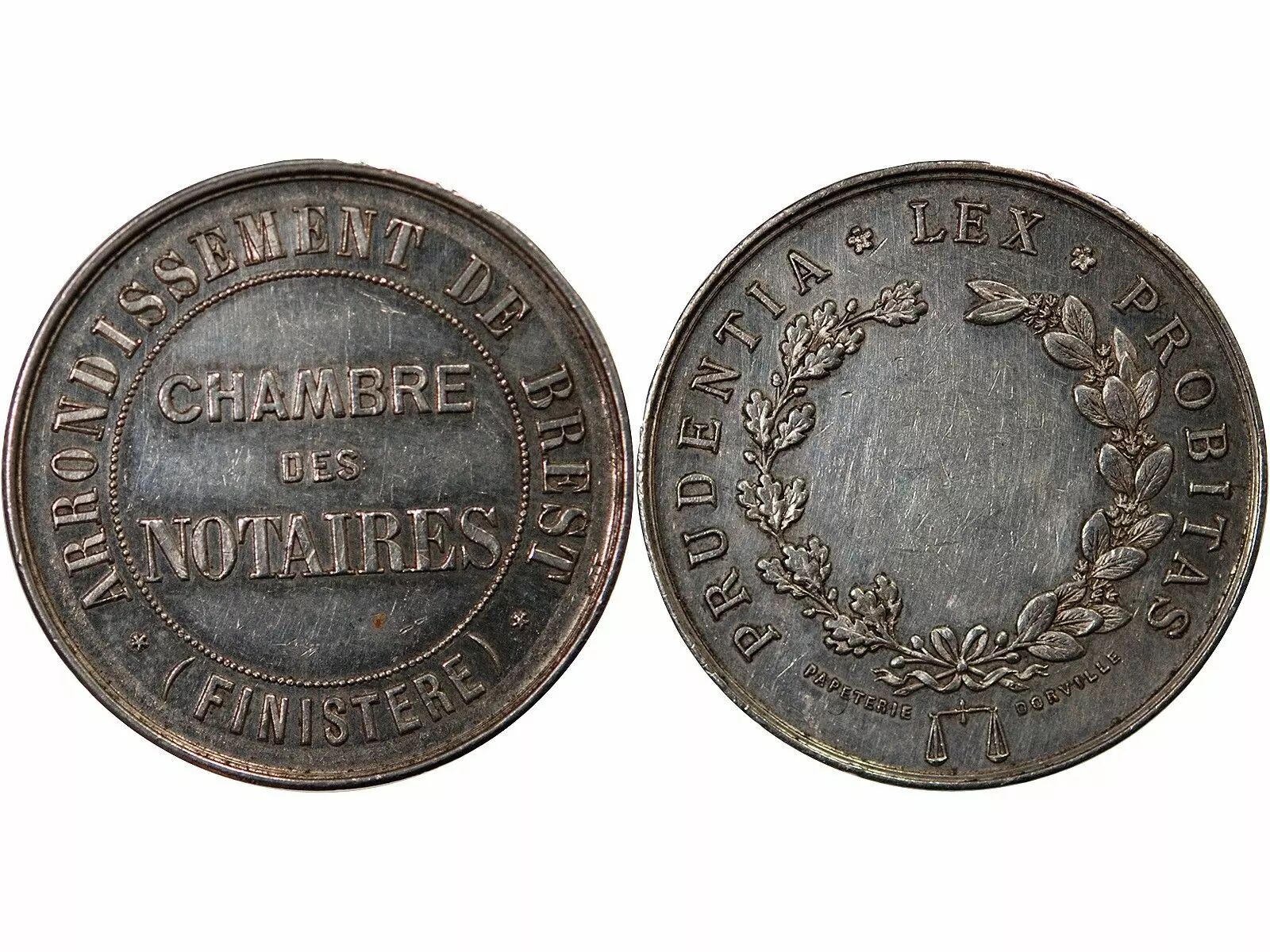 Accueil > Jetons Médailles Décorations > Jetons ( depuis 1600 ) > France Chambre Des Notaires De Brest - Jeton Argent Poinçon Corne (Après 1879)