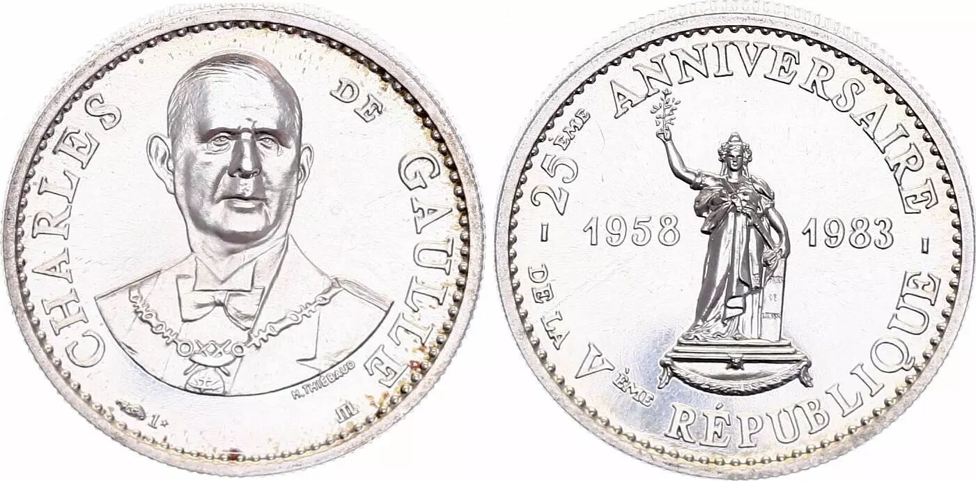 Home > French coins (470 à 2002) > Medals (since 1500) > France Charles de Gaulle - 25 years of 5th Republic - 1958-1983 - Silver
