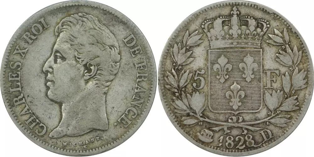 Charles X - 5 Francs - 1828 D Lyon - Silver