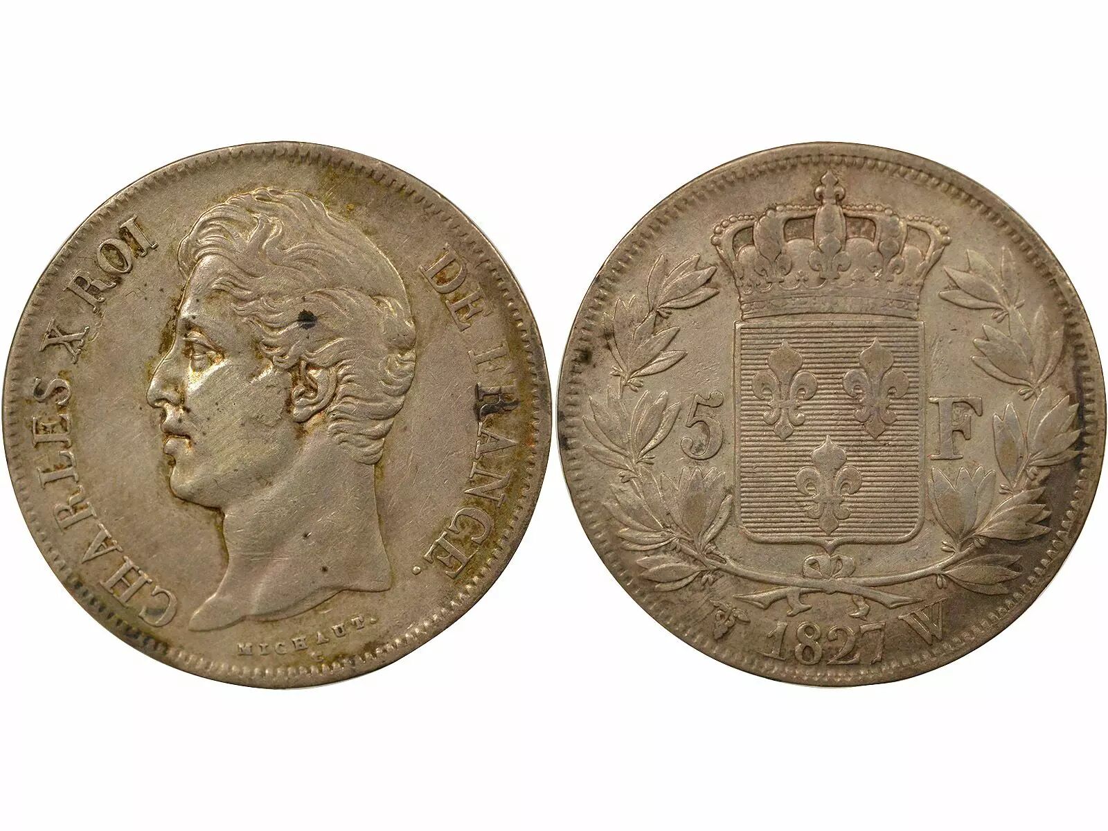 Pièce France Charles X - 5 Francs Argent, 2e Type - 1827 W Lille