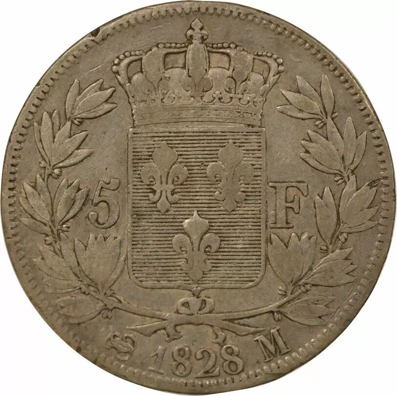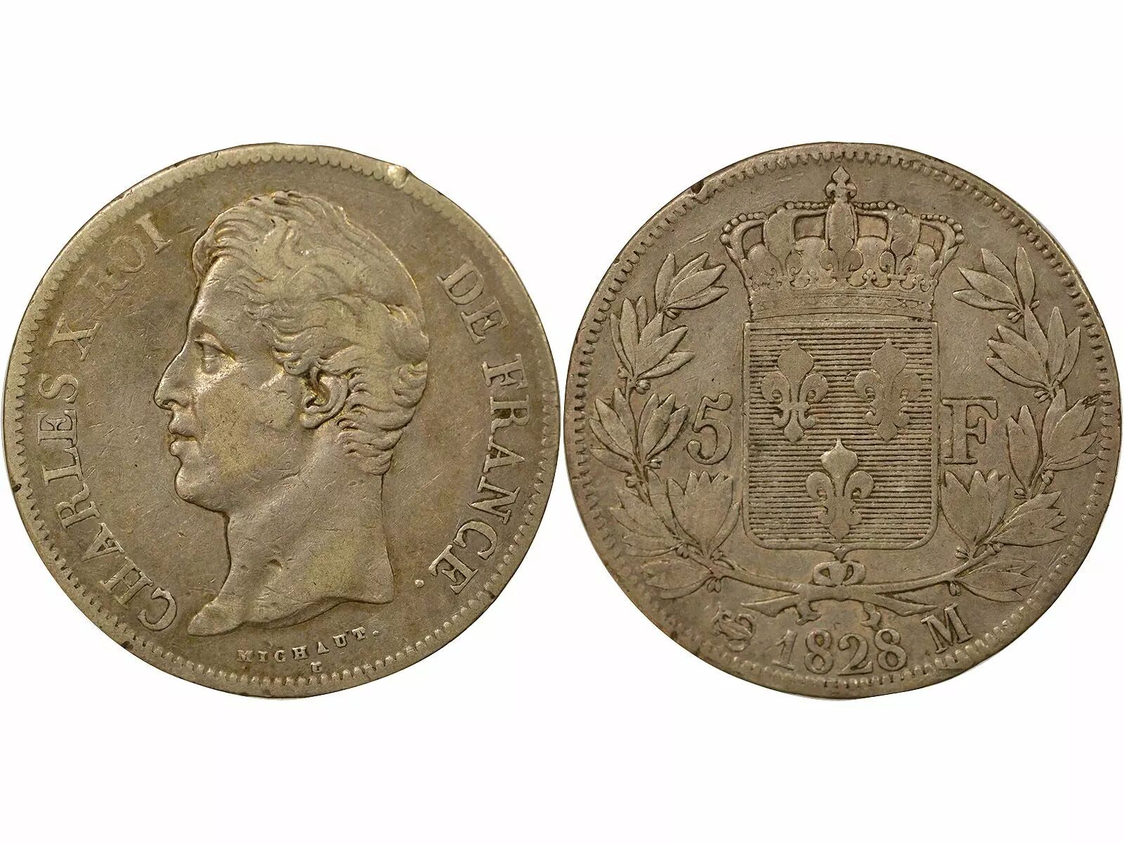Pièce France Charles X - 5 Francs Argent, 2e Type - 1828 M Toulouse