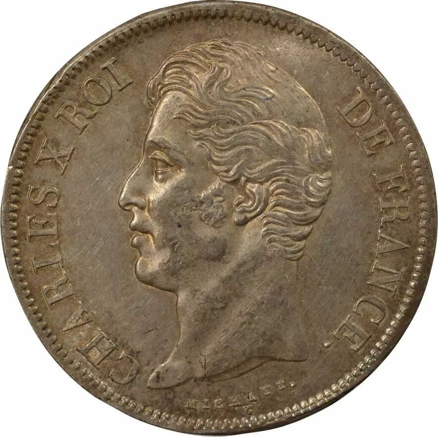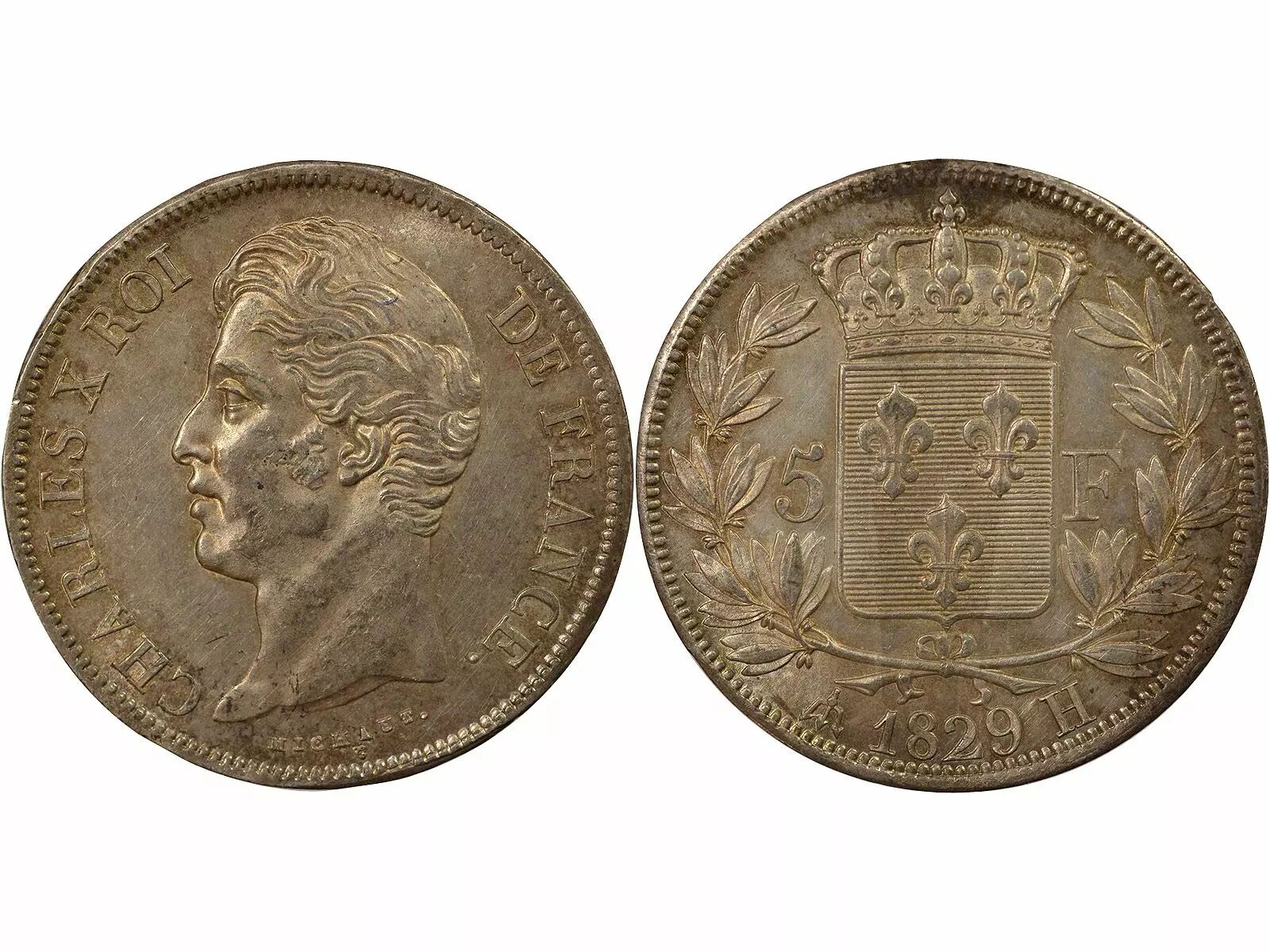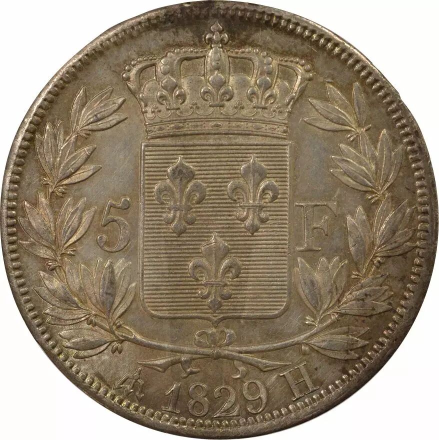 Home > > France Charles X - 5 Francs Argent, Tranche en Creux - 1829 H La Rochelle