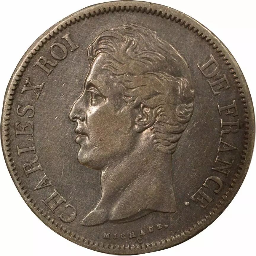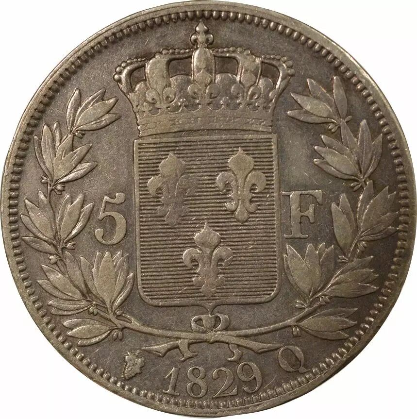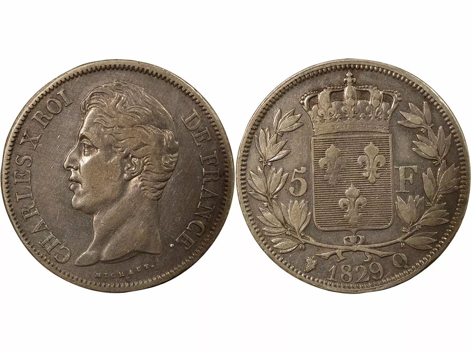 Coin France Charles X - 5 Francs Argent, tranche en Creux - 1829 Q Perpignan