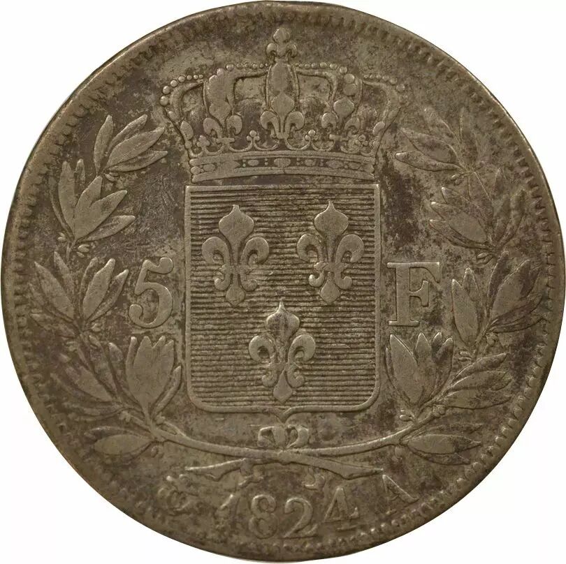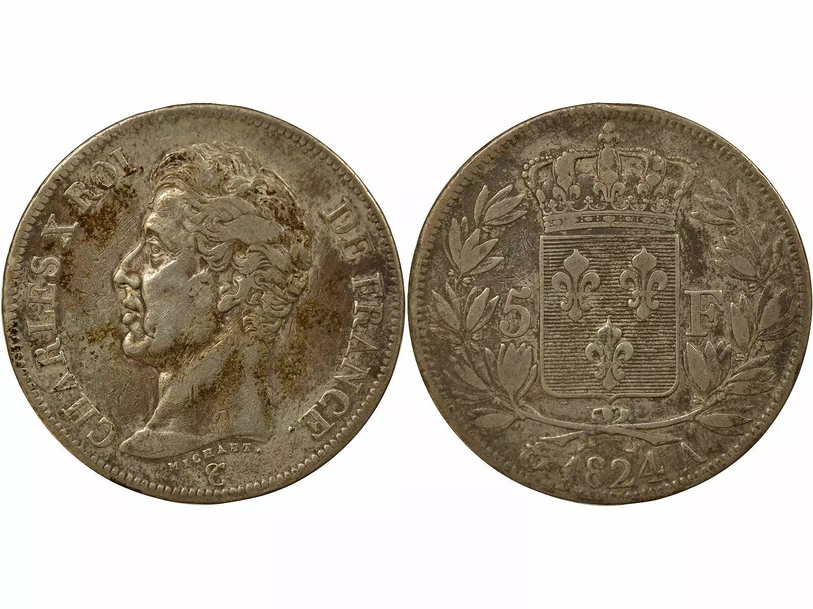 Coin France Charles X - 5 Silver Francs, 1st Type - 1824 A Paris