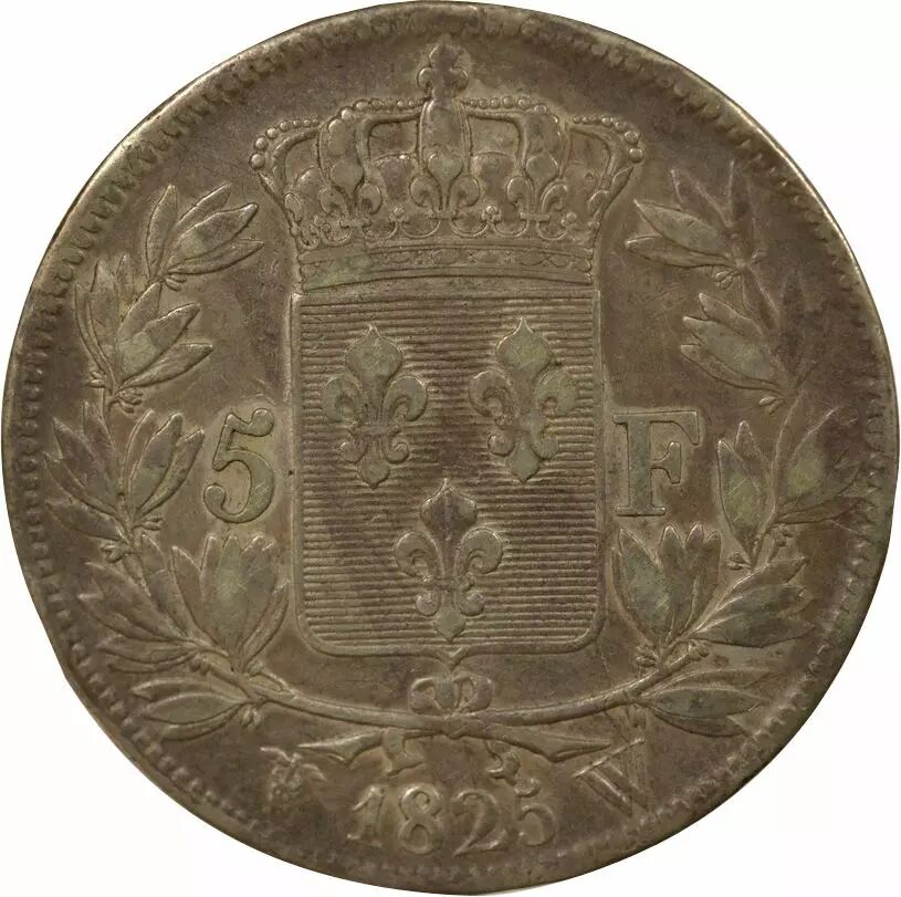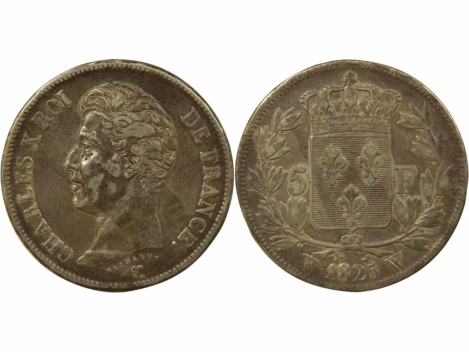 Coin France Charles X - 5 Silver Francs, 1st Type - 1825 W Lille