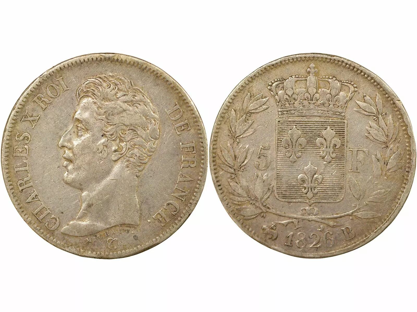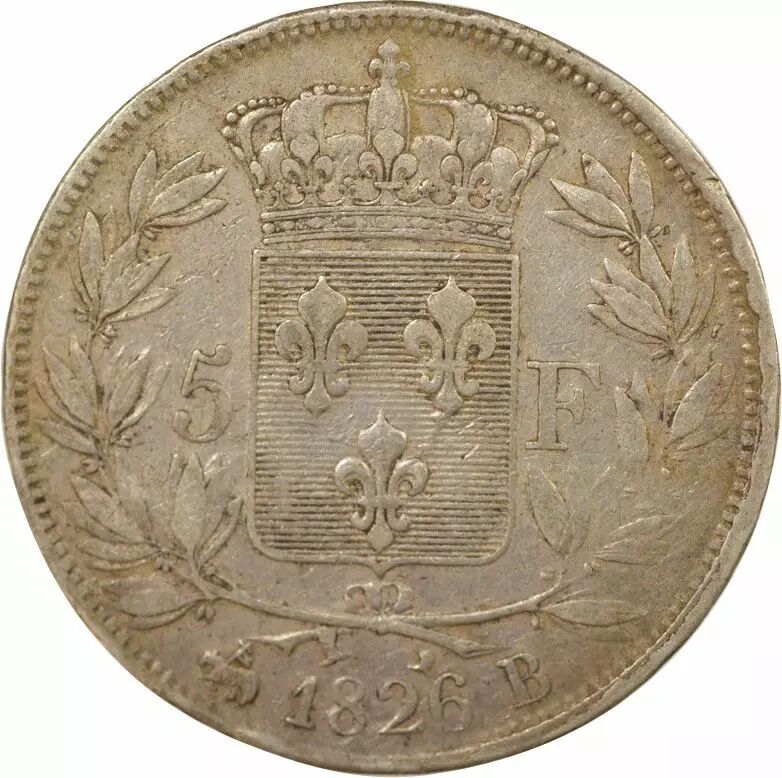 Coin France Charles X - 5 Silver Francs, 1st Type - 1826 B Rouen