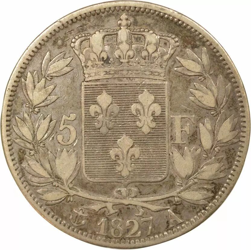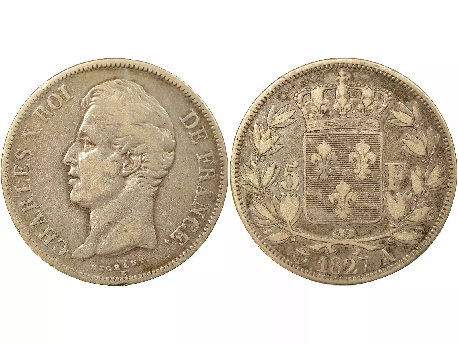 Coin France Charles X - 5 Silver Francs, 2nd Type - 1827 A Paris