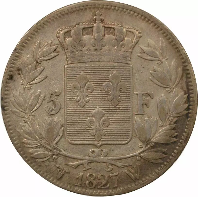 Coin France Charles X - 5 Silver Francs, 2nd Type - 1827 W Lille