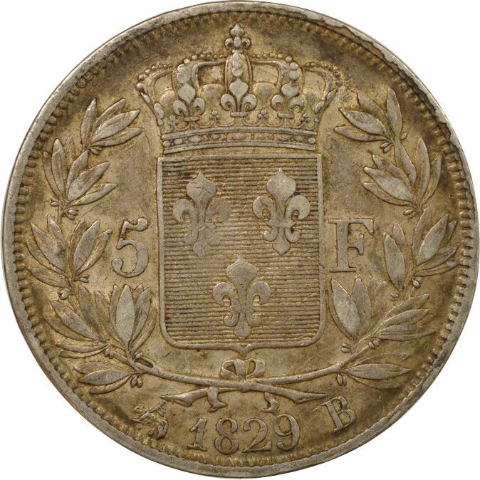 Coin France Charles X - 5 Silver Francs, 2nd Type - 1829 B Rouen