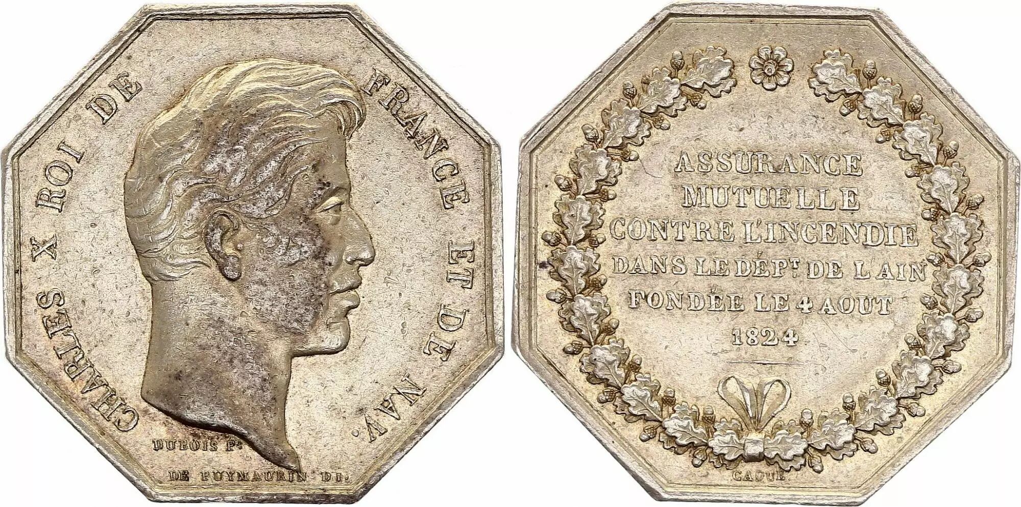 France Charles X - Assurances Incendie de l'Ain - 1824 - Argent