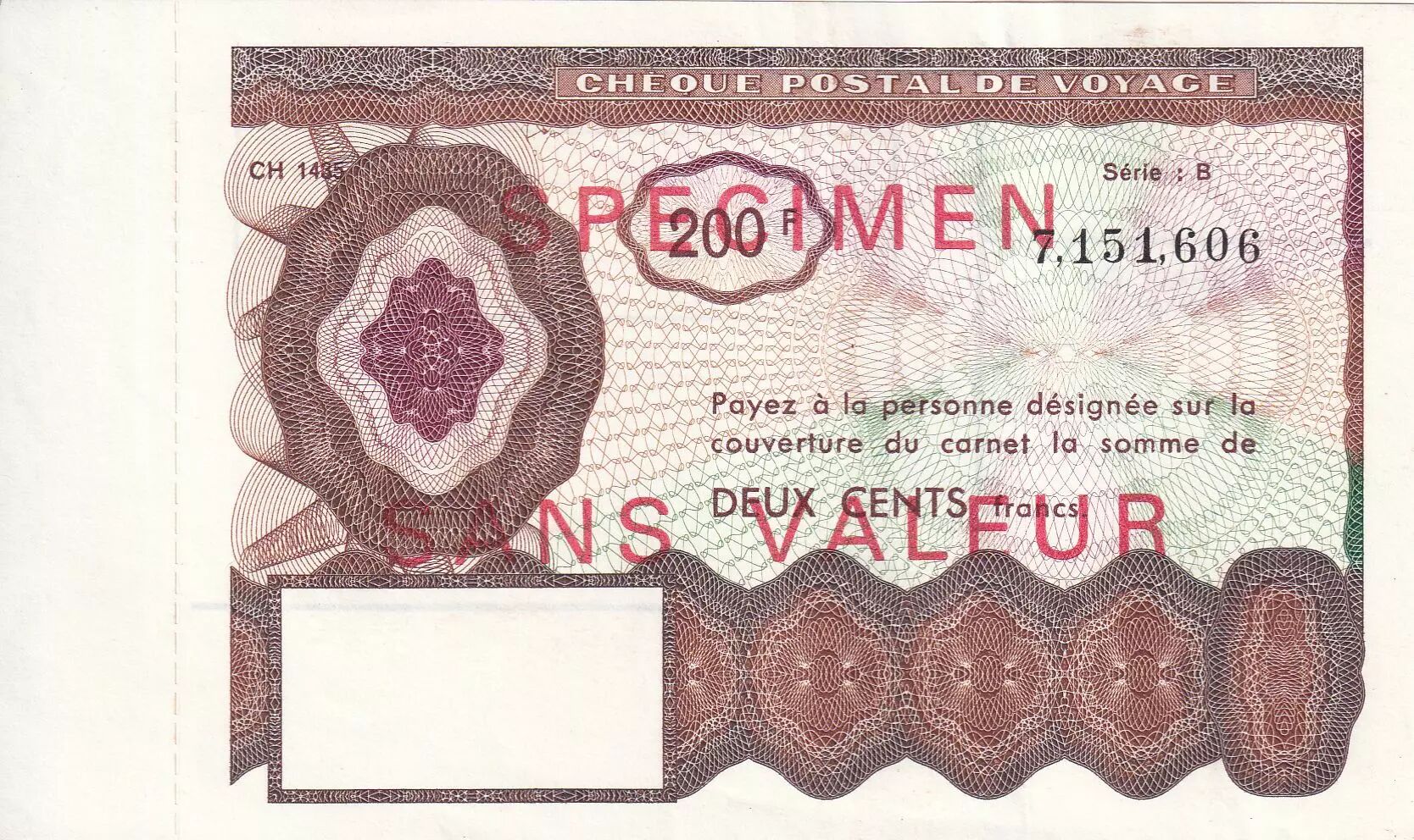 Accueil > Billets Français > France Chèque postal de voyage - Spécimen - Sans valeur