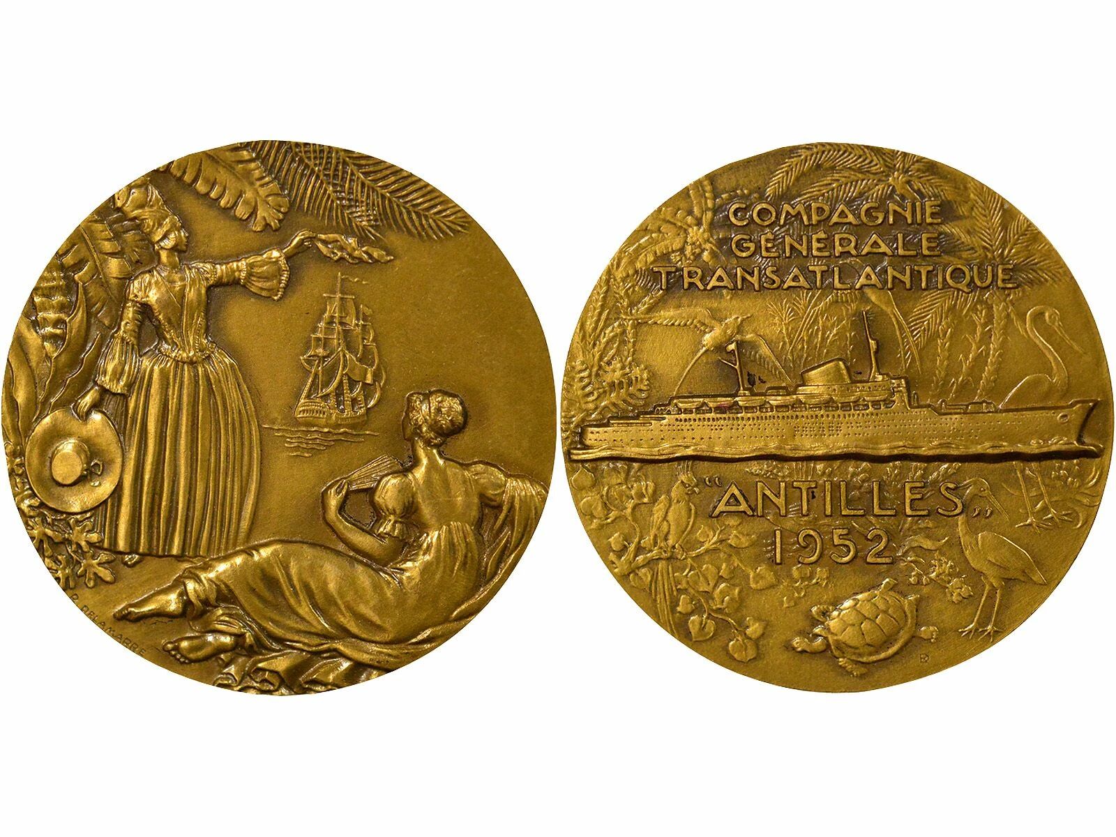 Reverse : COMPAGNIE / GENERALE / TRANSATLANTIQUE / "ANTILLES" / 1952