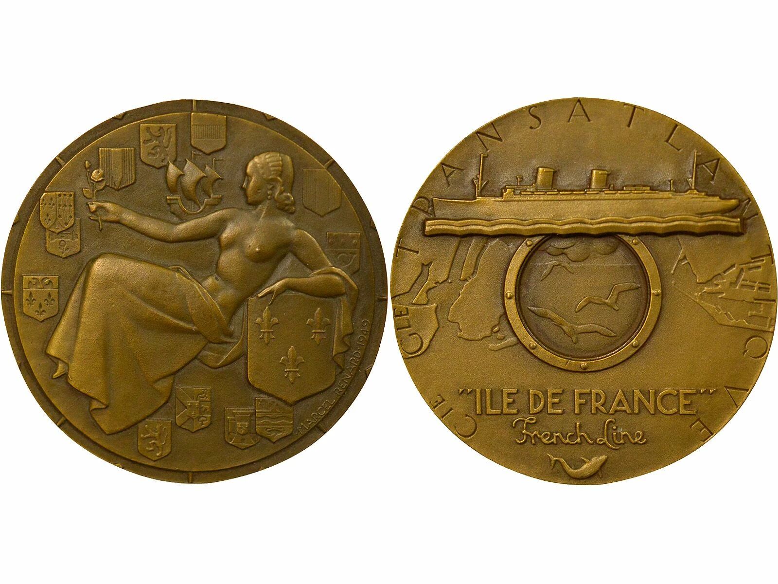 France Cie Gén. Transatlantique - Bronze Medal, SS Ile de France - 1949