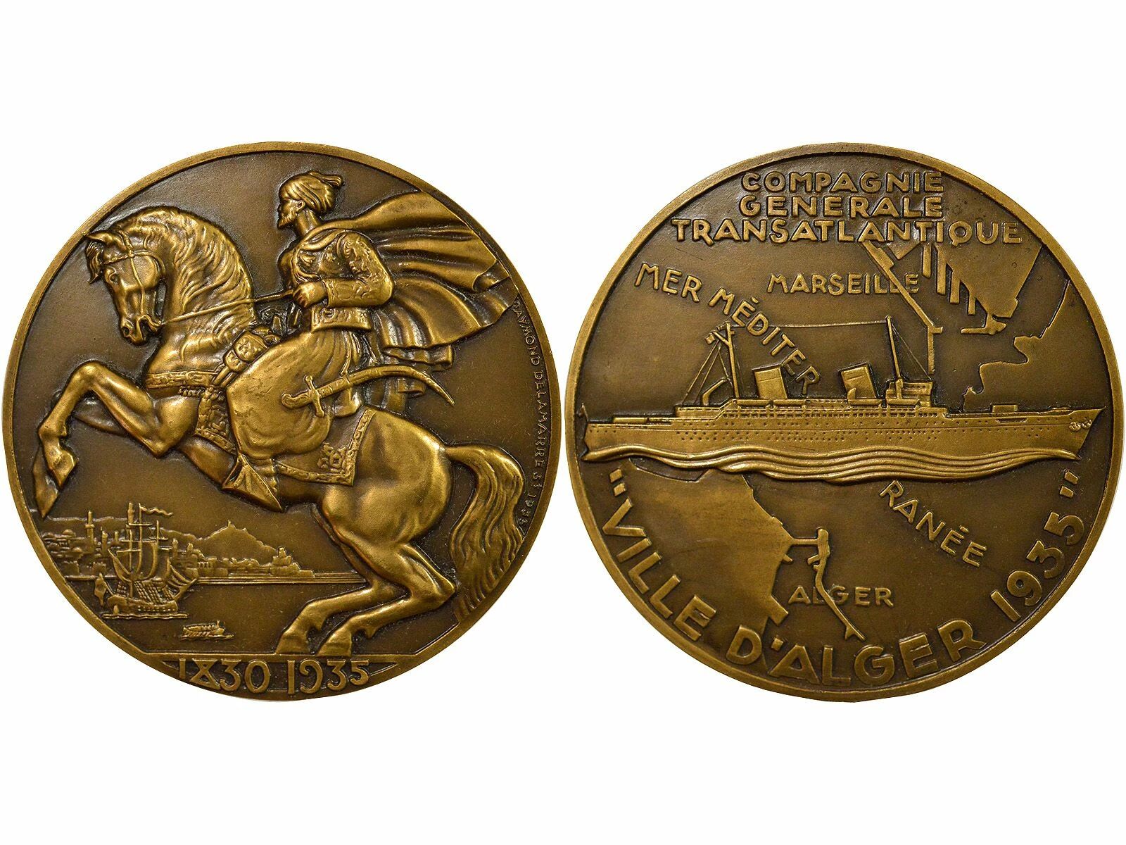 Revers : COMPAGNIE / GENERALE / TRANSATLANTIQUE / MARSEILLE / MER MEDITER - RANEE / ALGER / ?VILLE D?ALGER 1935"