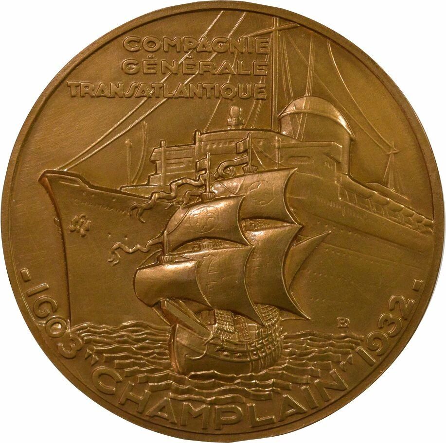 Reverse : COMPAGNIE / GENERALE / TRANSATLANTIQUE / -1603 ?CHAMPLAIN? 1932 -