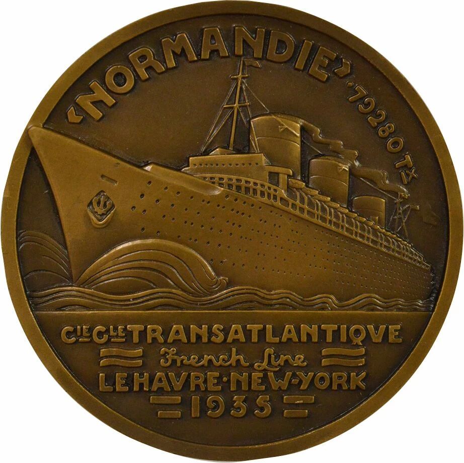 Revers e: ?NORMANDIE? . 79280 TX / CIE. GLE. TRANSATLANTIQVE / FRENCH LINE / LE HAVRE . NEW-YORK / 1935