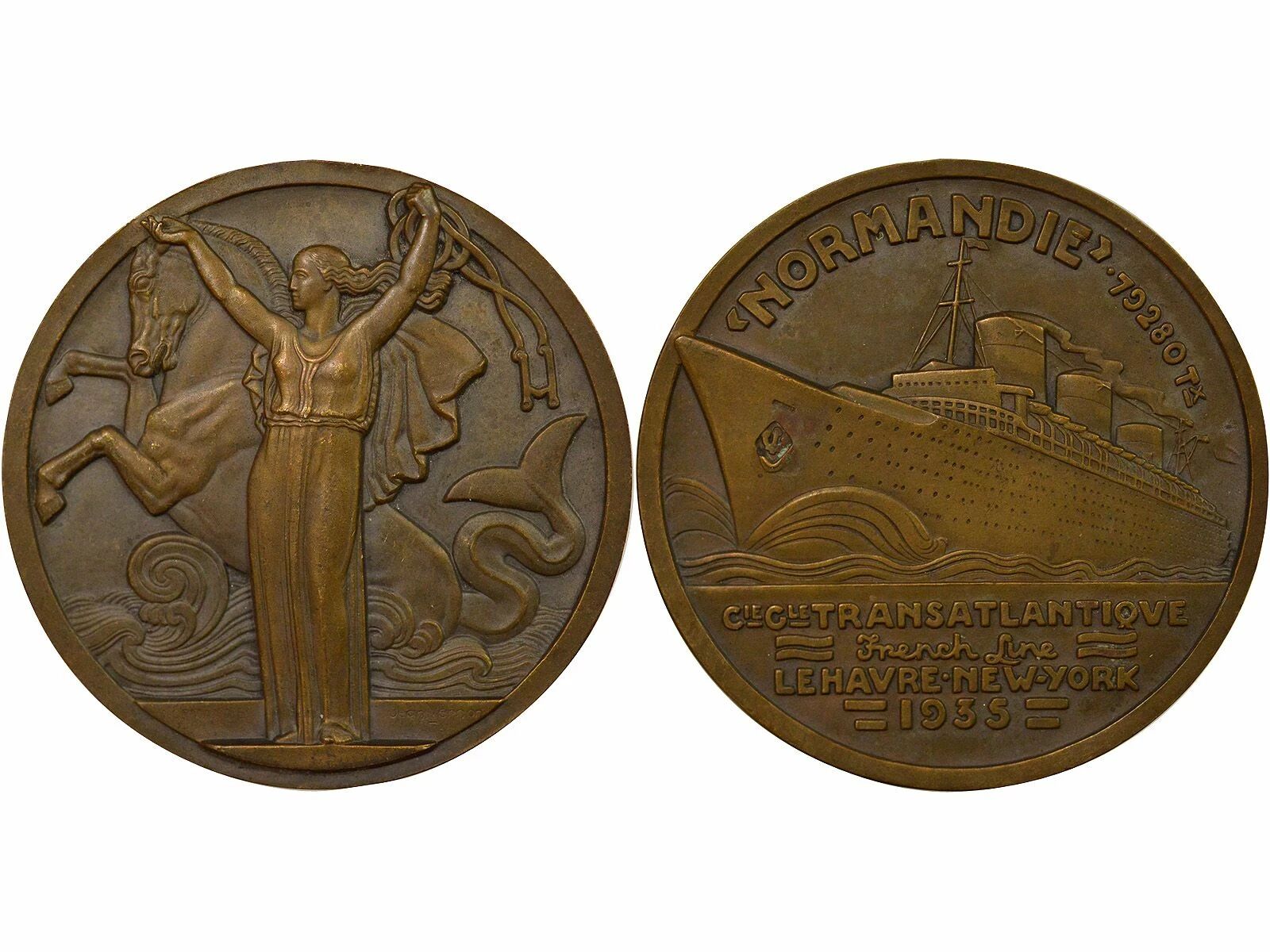 Revers e: ?NORMANDIE? . 79280 TX / CIE. GLE. TRANSATLANTIQVE / FRENCH LINE / LE HAVRE . NEW-YORK / 1935