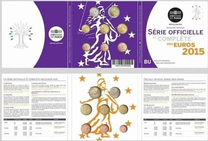 Pièce France Coffret BU 2015 - 8 pièces euros Monnaie de Paris