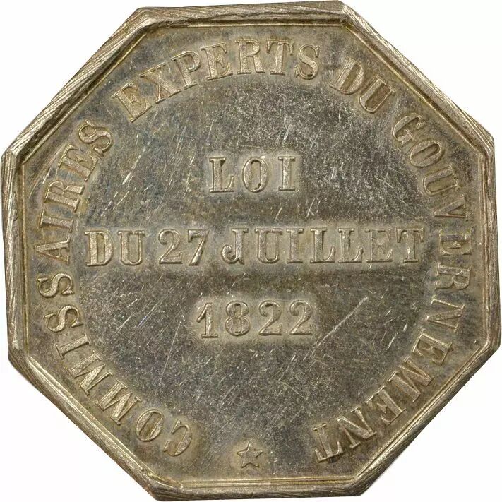 Revers : COMISSAIRES EXPERTS DU GOUVERNEMENT / LOI / DU 27 JUILLET / 1822