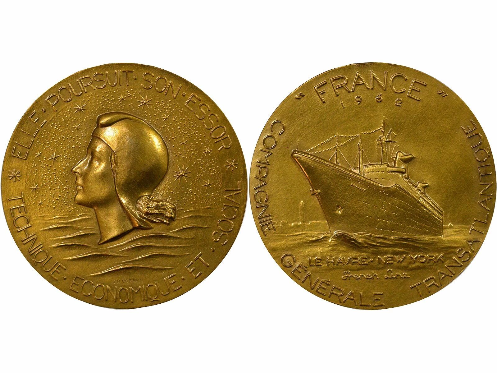 Reverse : " FRANCE " / 1962 / LE HAVRE . NEW YORK / French Line / COMPAGNIE GENERALE TRANSATLANTIQUE