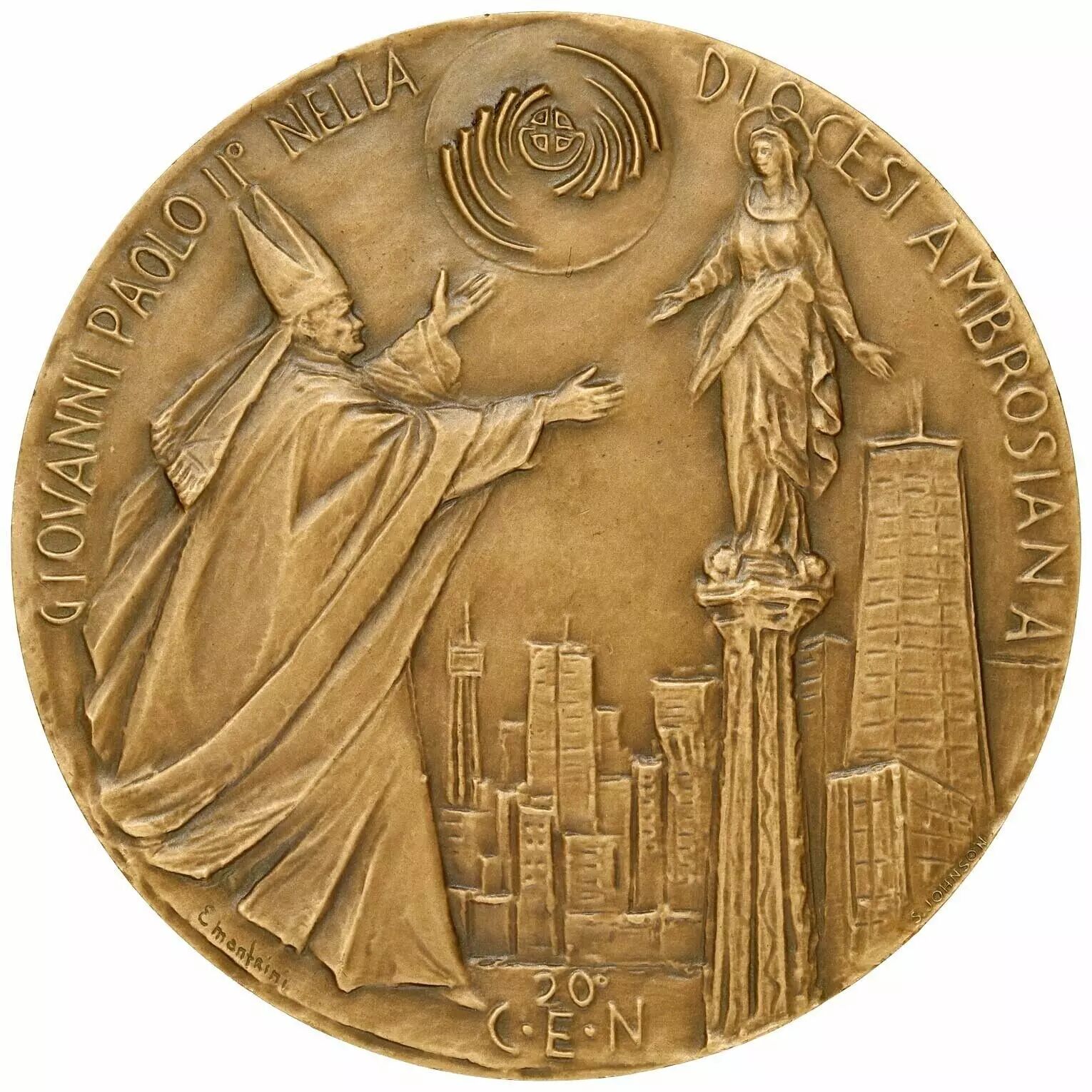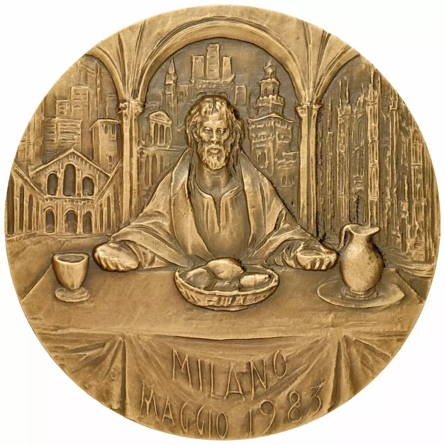 Médaille émise les 20-05-1983 par l’Etablissement Stefano Johnson de Milan, pour rappeler la visite du Pape à Milan à l’occasion du 20ème Congrès eucharistique national.