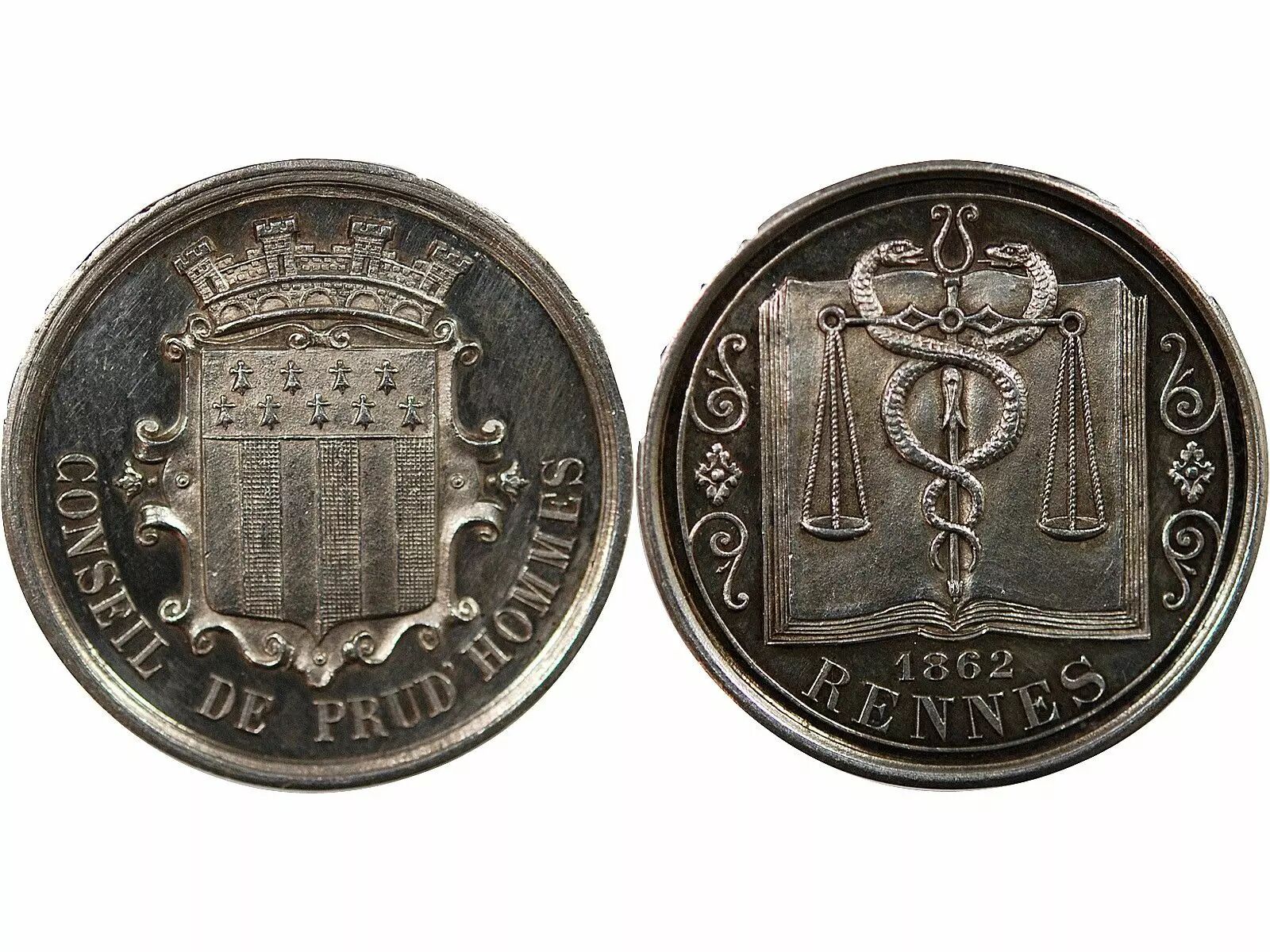 Accueil > Jetons Médailles Décorations > Jetons ( depuis 1600 ) > France Conseil de Prud'Hommes de Rennes - Jeton Argent, 1862 Poinçon Abeille (Après 1860-1879)