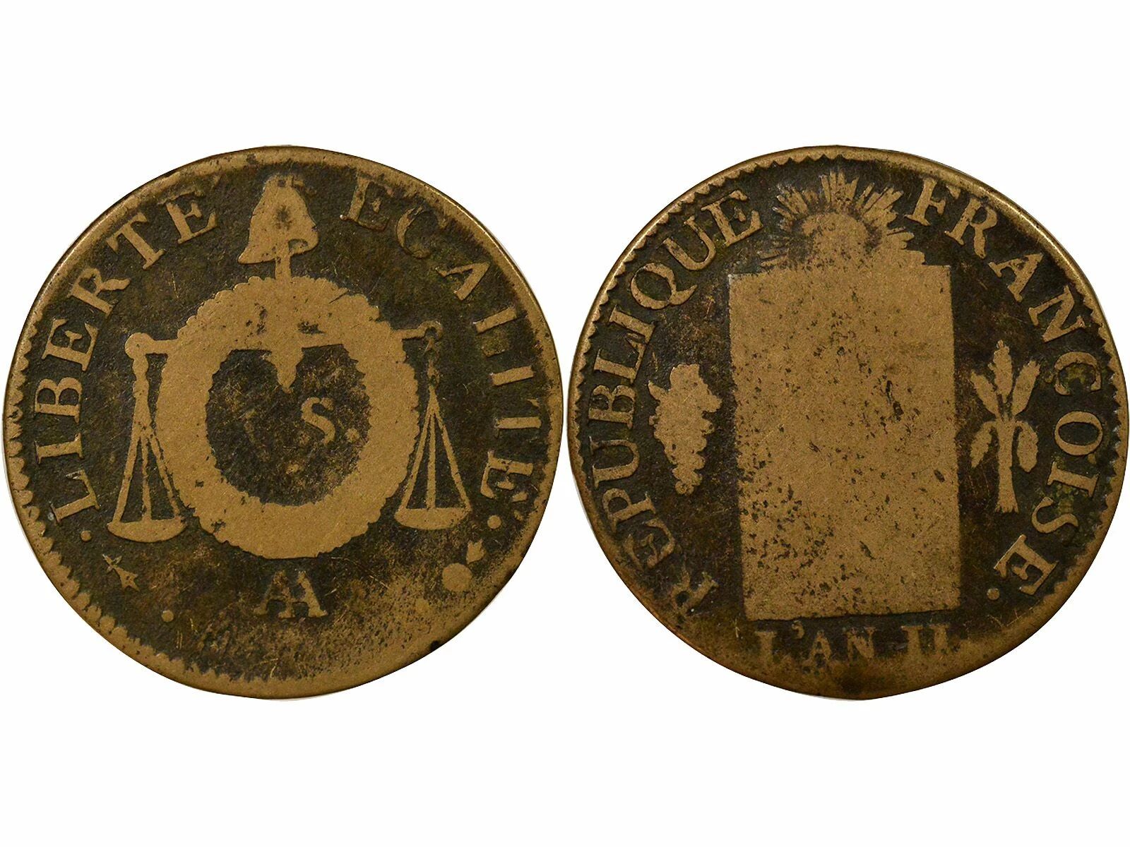Pièce France Convention - Sol à la Balance - An II AA Metz