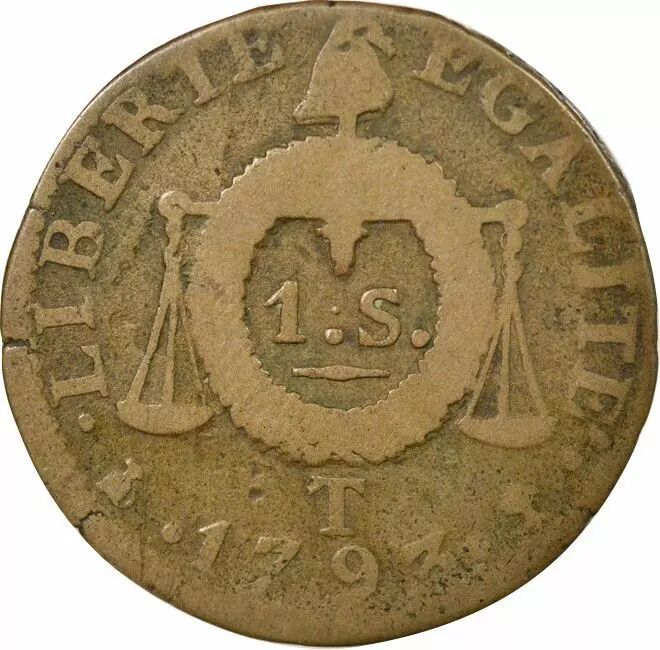 Coin France Convention - Sol with Balances - 1793 T Nantes