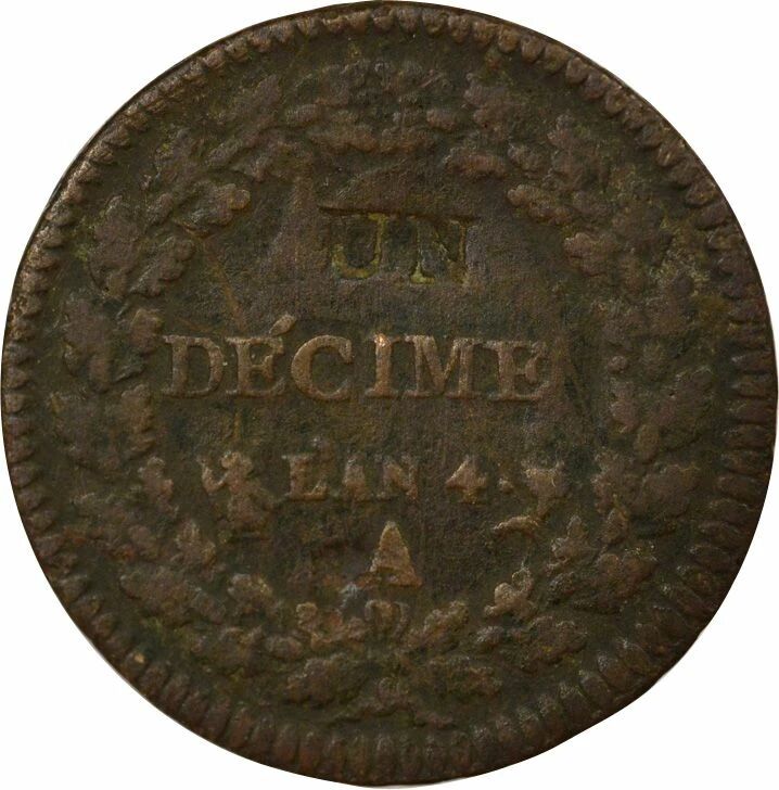 Pièce France Décime - Dupré, Un en Creux - An 4 A Paris
