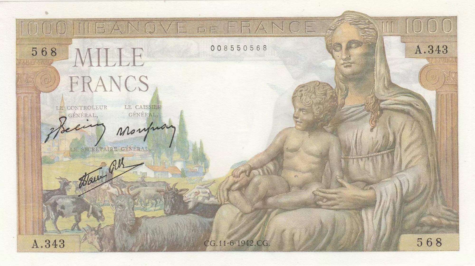 Banknote France Demeter 1000 Francs - 11-06-1942 - Serial A.343