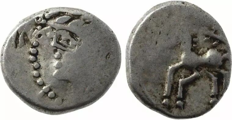 Allobroges - Cheval galopant - Epée Allobroges - Cheval galopant à gauche, au-dessus une épée.