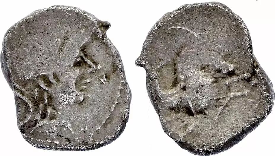 Accueil > Archivage > archivage-Monnaies antiques > France Denier Allobroges - Pallas - Hippocampe (-90-60) - Argent - TB +
