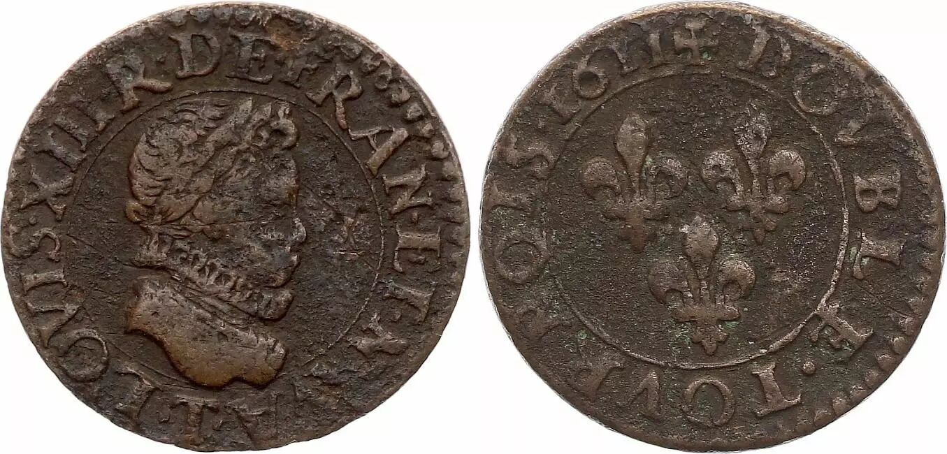 Pièce France Double tournois - Louis XIII au bust enfantin et col fraisé - 1611 T Nantes