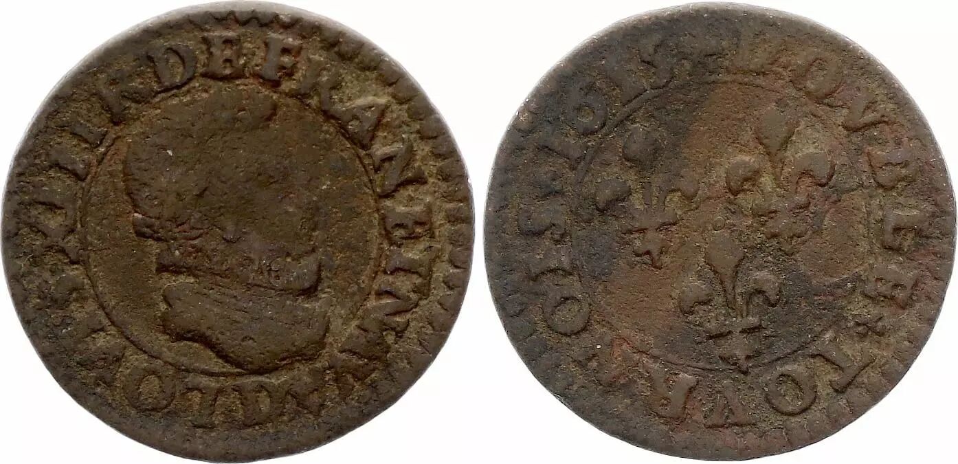 Accueil > Monnaies françaises (470 à 2002) > Monnaies Royales (987 à 1870) > Louis XIII (1601-1643) > France Double tournois - Louis XIII au buste enfantin- 1615 D Lyon