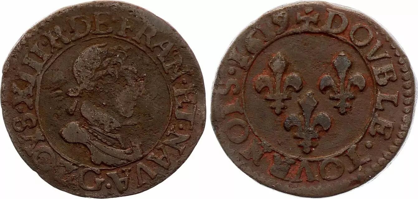 Coin France Double tournois - Louis XIII child bust - 1619 G Poitiers